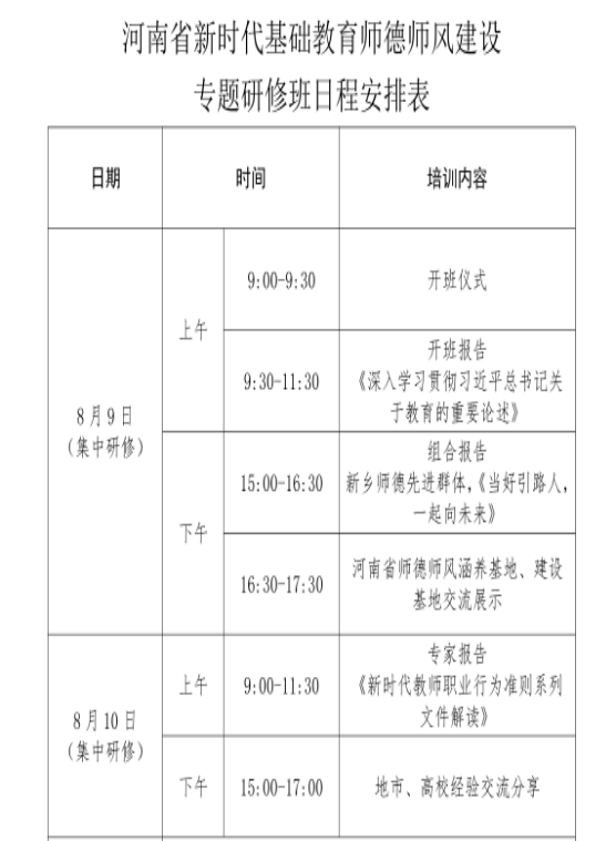 三、集中研修时间:8月9日-10日,具体研修日程安排见附件。